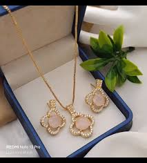 The Royal Clover Set (Gold): A luxurious gold-plated set featuring a unique clover motif and a delicate pink center stone for a high-fashion look.